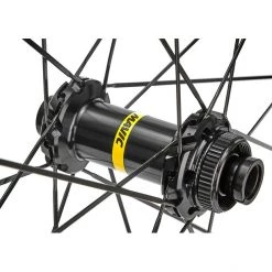 La Mavic CXP Elite aĂ©rodynamique est dotĂ©e d’une mâchoire de 15 mm de large, d’un joint de jante accouplĂ© et de trous d’Ĺ“illet pour une durabilitĂ© accrue.