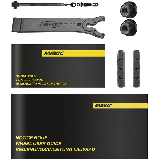 Profil de jante NACA tout carbone de 64 mm de profondeur. Largeur de 26 mm, optimisée pour les pneus de 25 mm pour une faible traînée et une grande stabilité par vent de travers. 20 rayons plats à traction directe, à triple entrelacement, pour une rigidité latérale élevée.